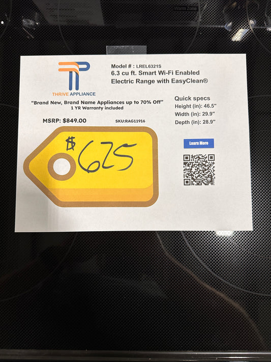 LG 6.3 CU FT BRAND NEW ELECTRIC RANGE MODEL: lrel6321s RAG11916