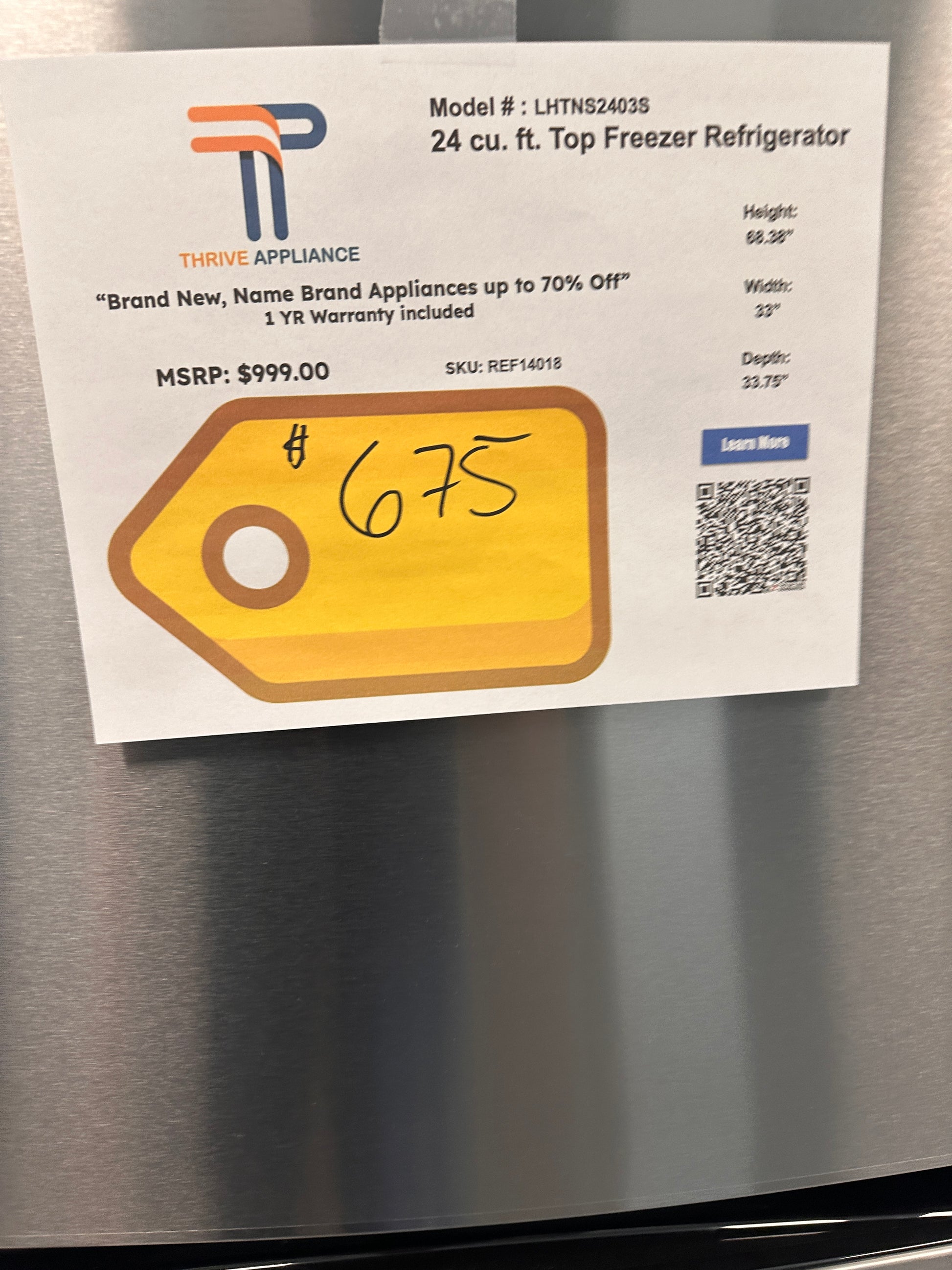BEAUTIFUL BRAND NEW LG TOP FREEZER REFRIGERATOR MODEL: LHTNS2403S REF14018