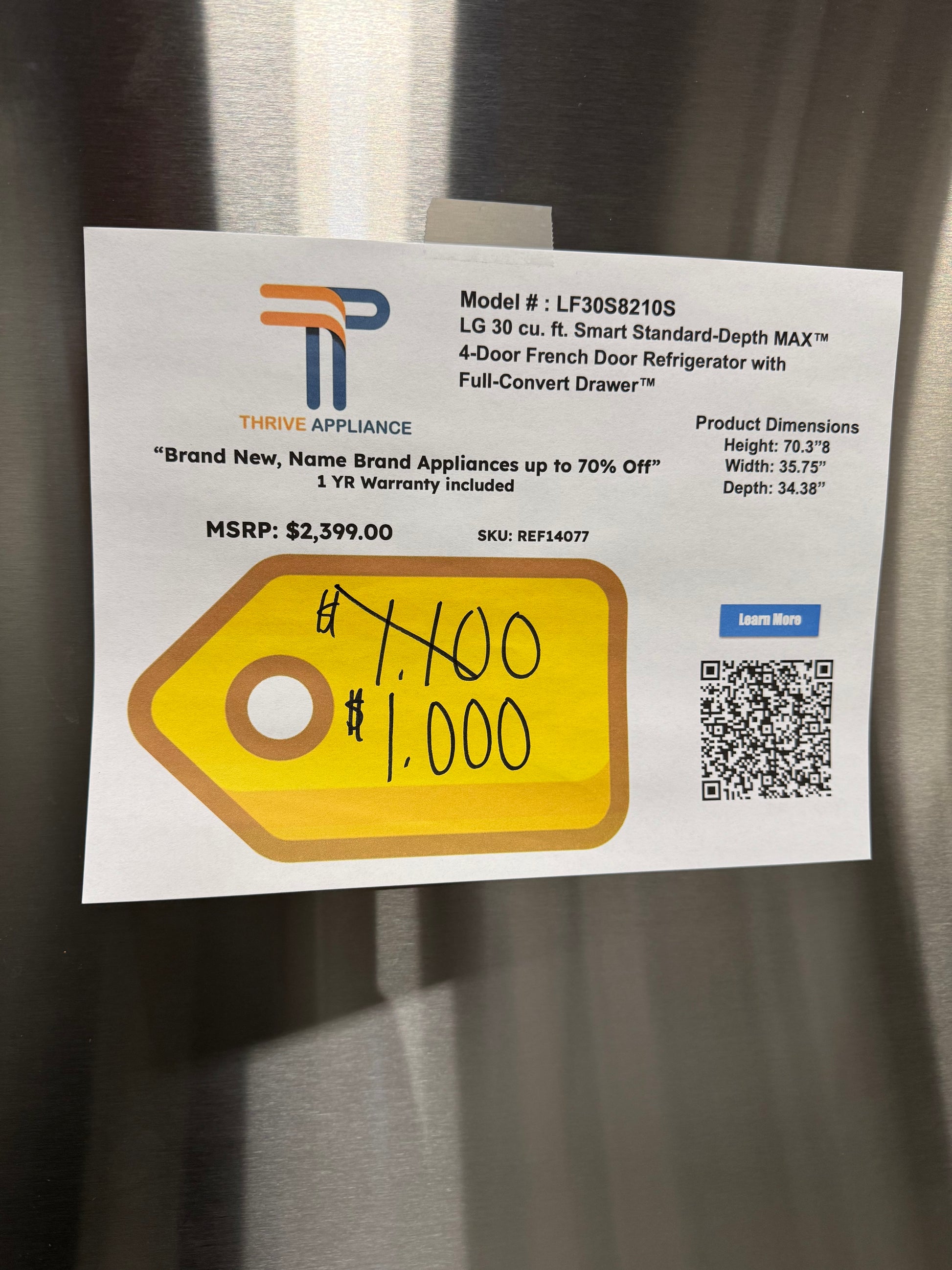 BRAND NEW LG SMART STANDARD DEPTH MAX REFRIGERATOR MODEL: LF30S8210S REF14077