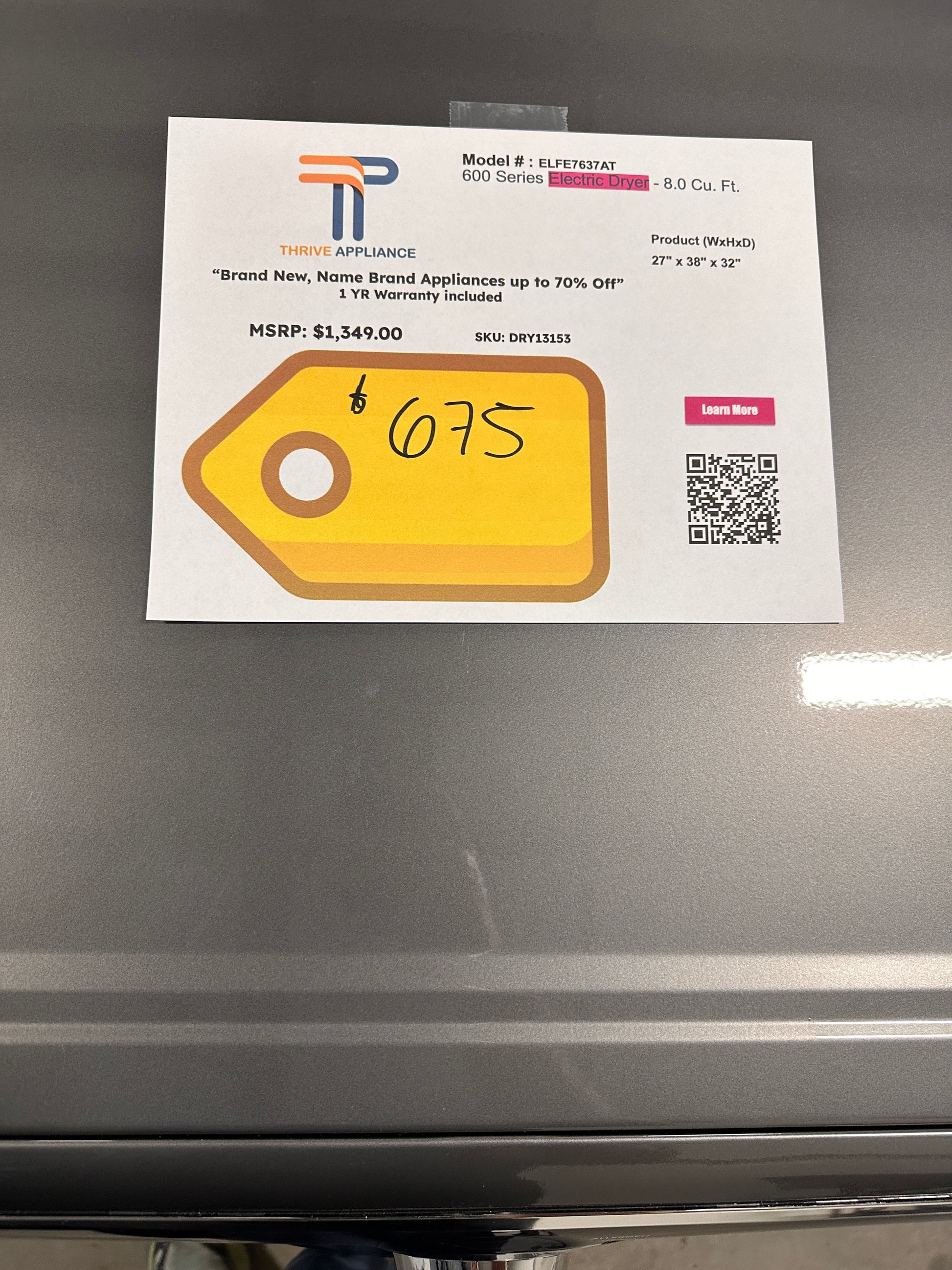 Electrolux Electric 8.0 Cu. Ft. Front Load Dryer MODEL: ELFE7637AT DRY13153