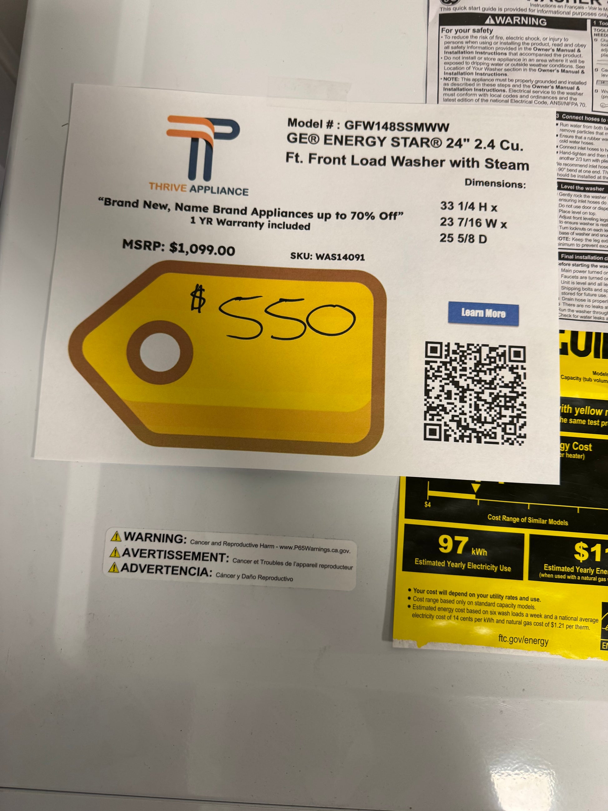 GE® ENERGY STAR® 24" 2.4 Cu. Ft. COMPACT Front Load Washer with Steam MODEL: GFW148SSMWW SKU: WAS14091