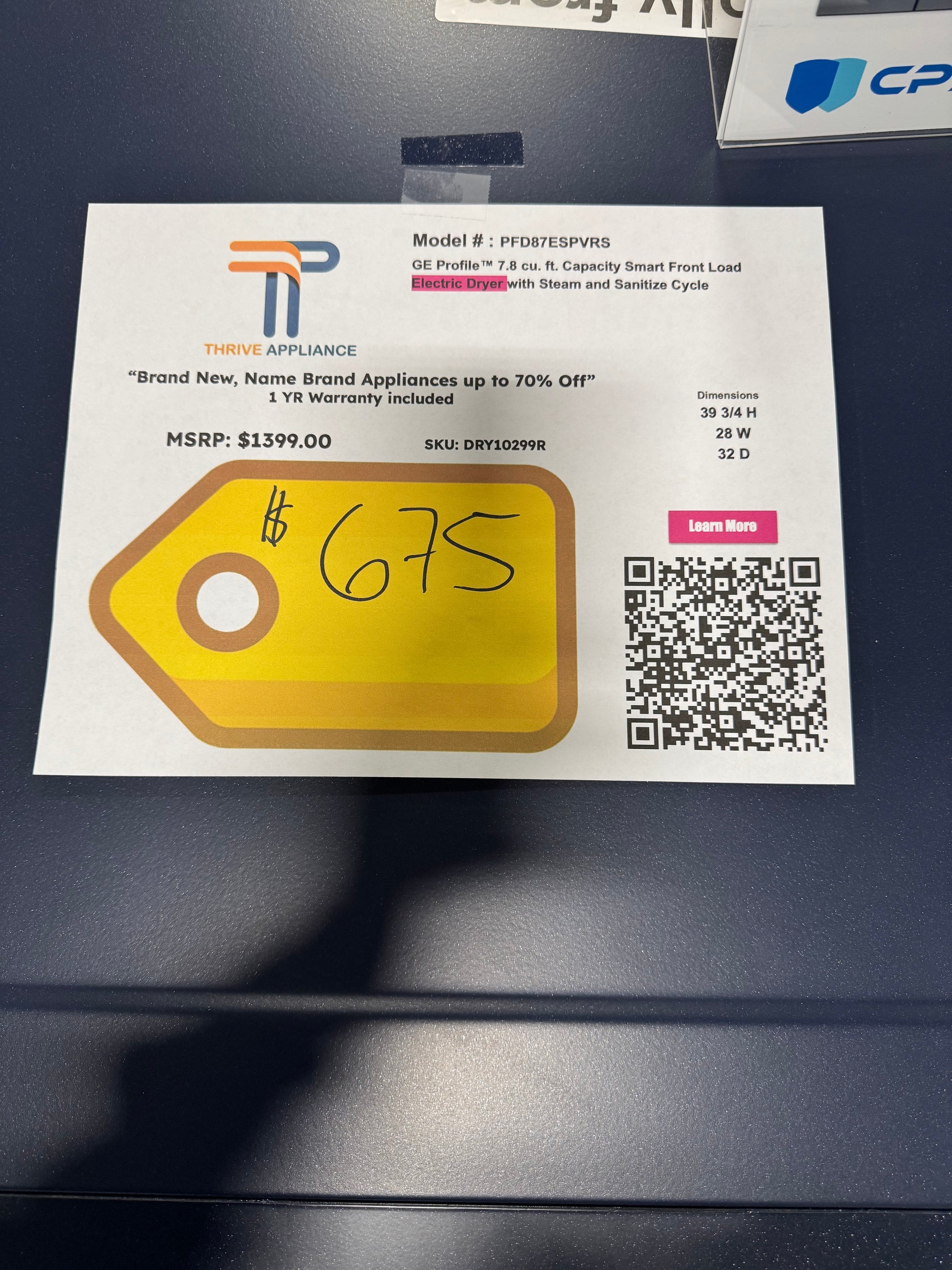 GORGEOUS NEW GE PROFILE ELECTRIC DRYER MODEL: PFD87ESPVRS DRY10299R