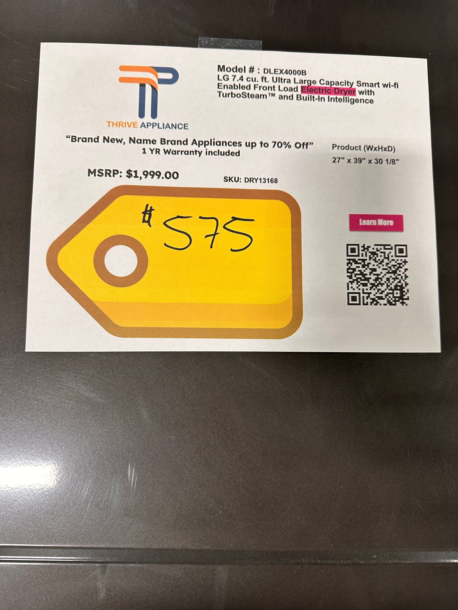 GREAT NEW LG FRONT LOAD ELECTRIC DRYER MODEL: DLEX4000B DRY13168