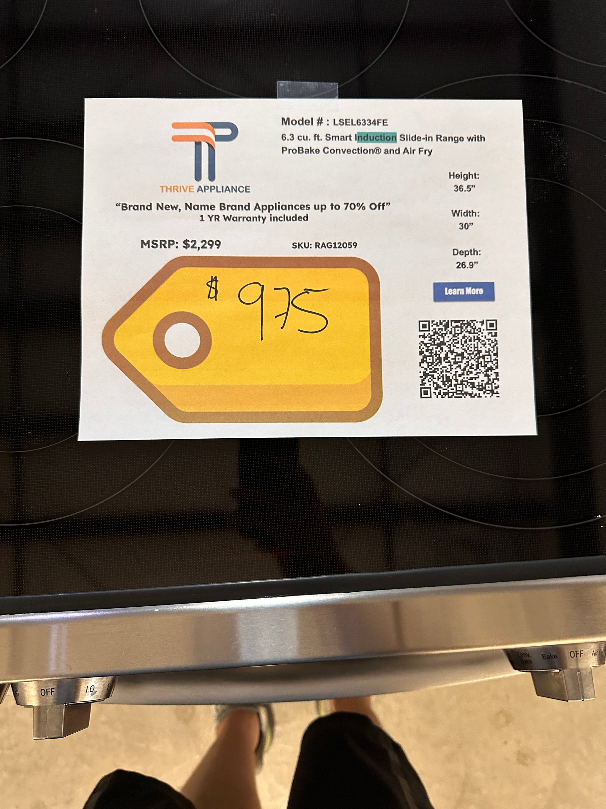 GREAT NEW LG INSTAVIEW ELECTRIC RANGE WITH AIR FRY MODEL: LSEL6335FE RAG12059