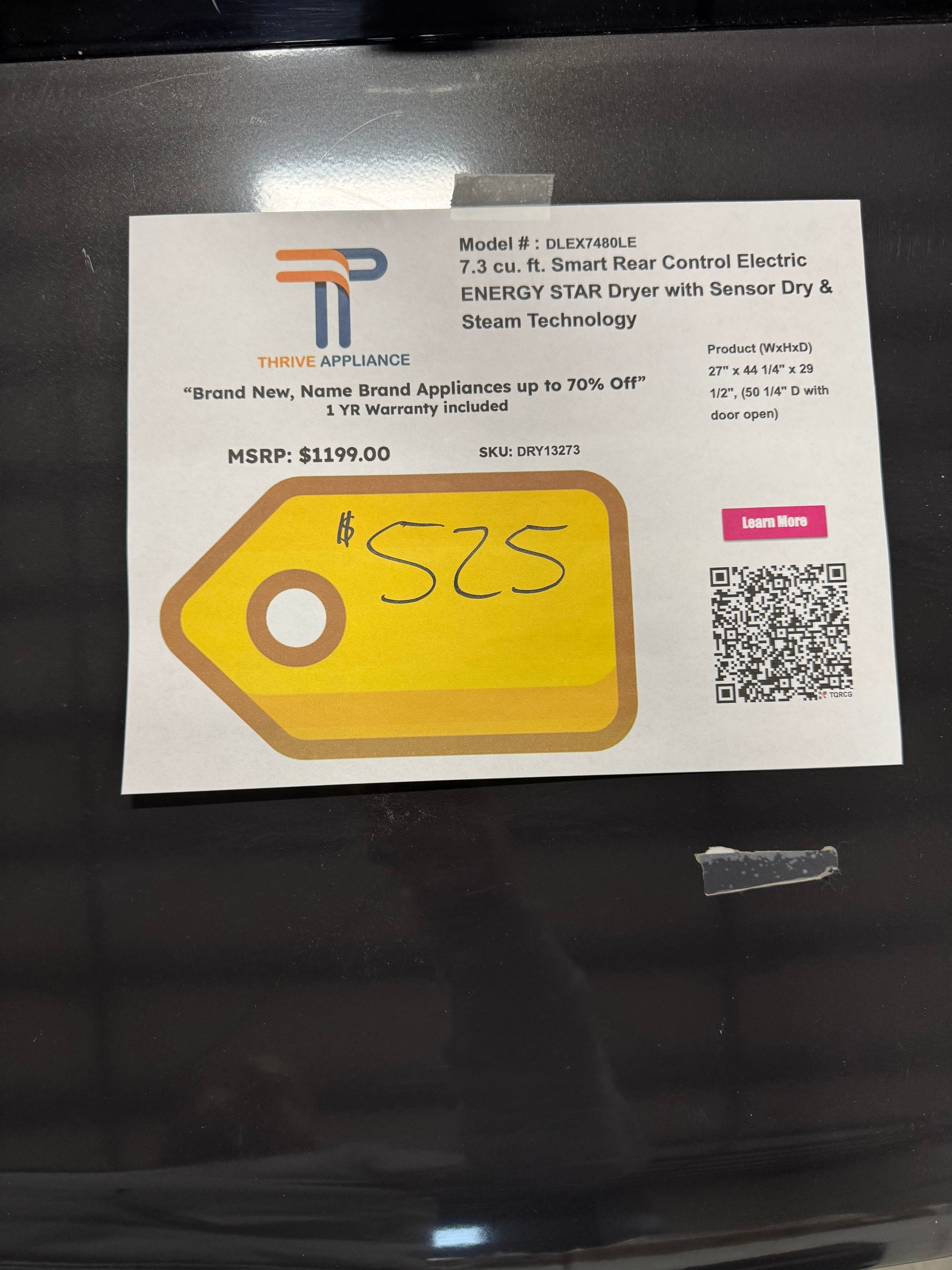 LG 7.3 cu. ft. Smart Rear Control Electric ENERGY STAR Dryer with Sensor Dry & Steam Technology