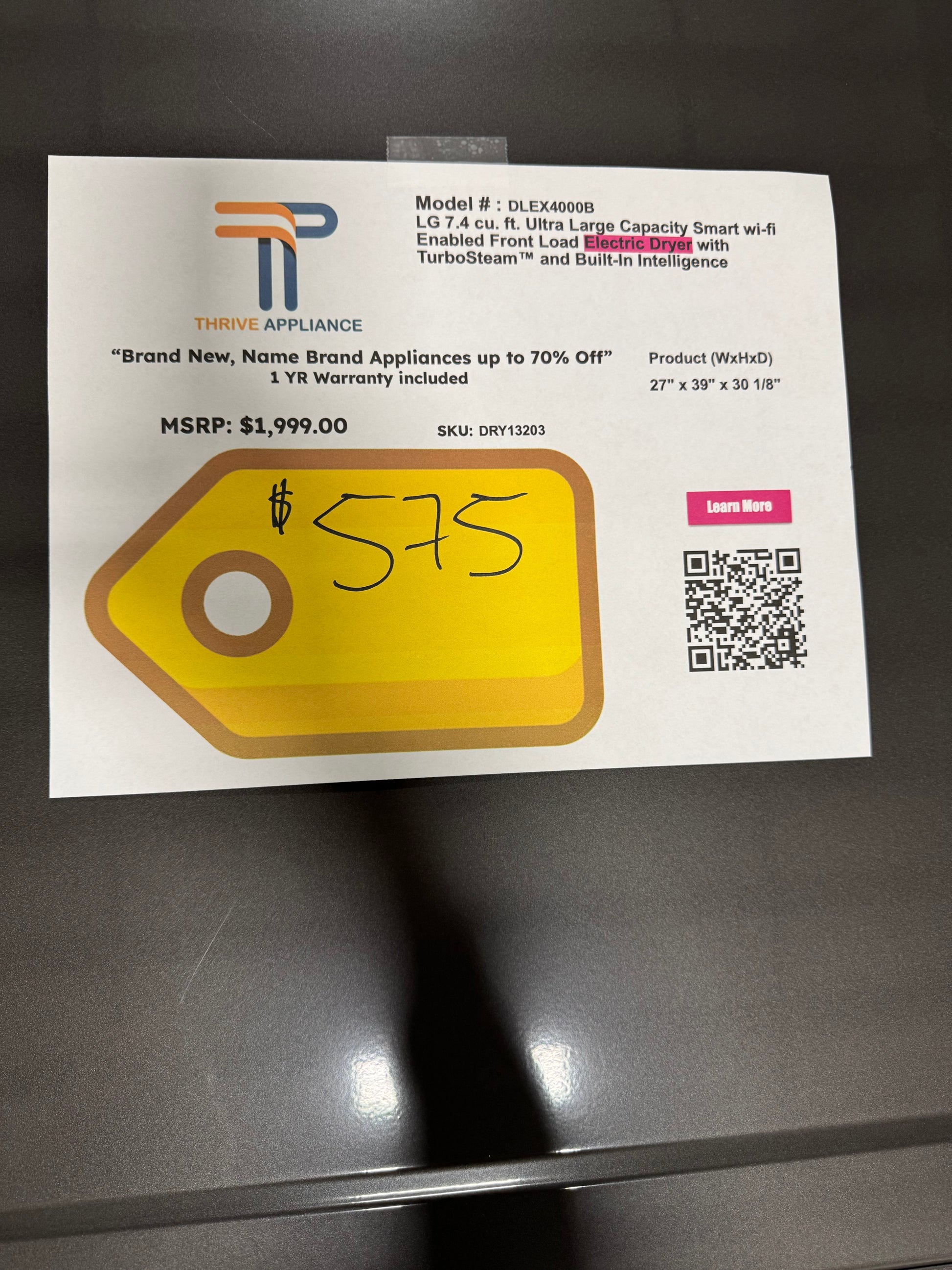 LG - 7.4 Cu. Ft. Stackable Smart Electric Dryer with Steam and Built-In Intelligence - Black Steel MODEL: DLEX4000B SKU: DRY13203