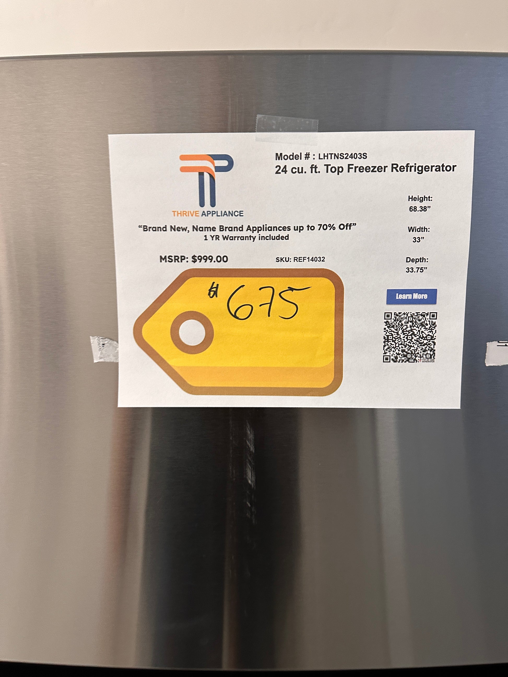 LG STAINLESS STEEL REFRIGERATOR with INTERNAL WATER DISPENSER MODEL: LHTNS2403S REF14032
