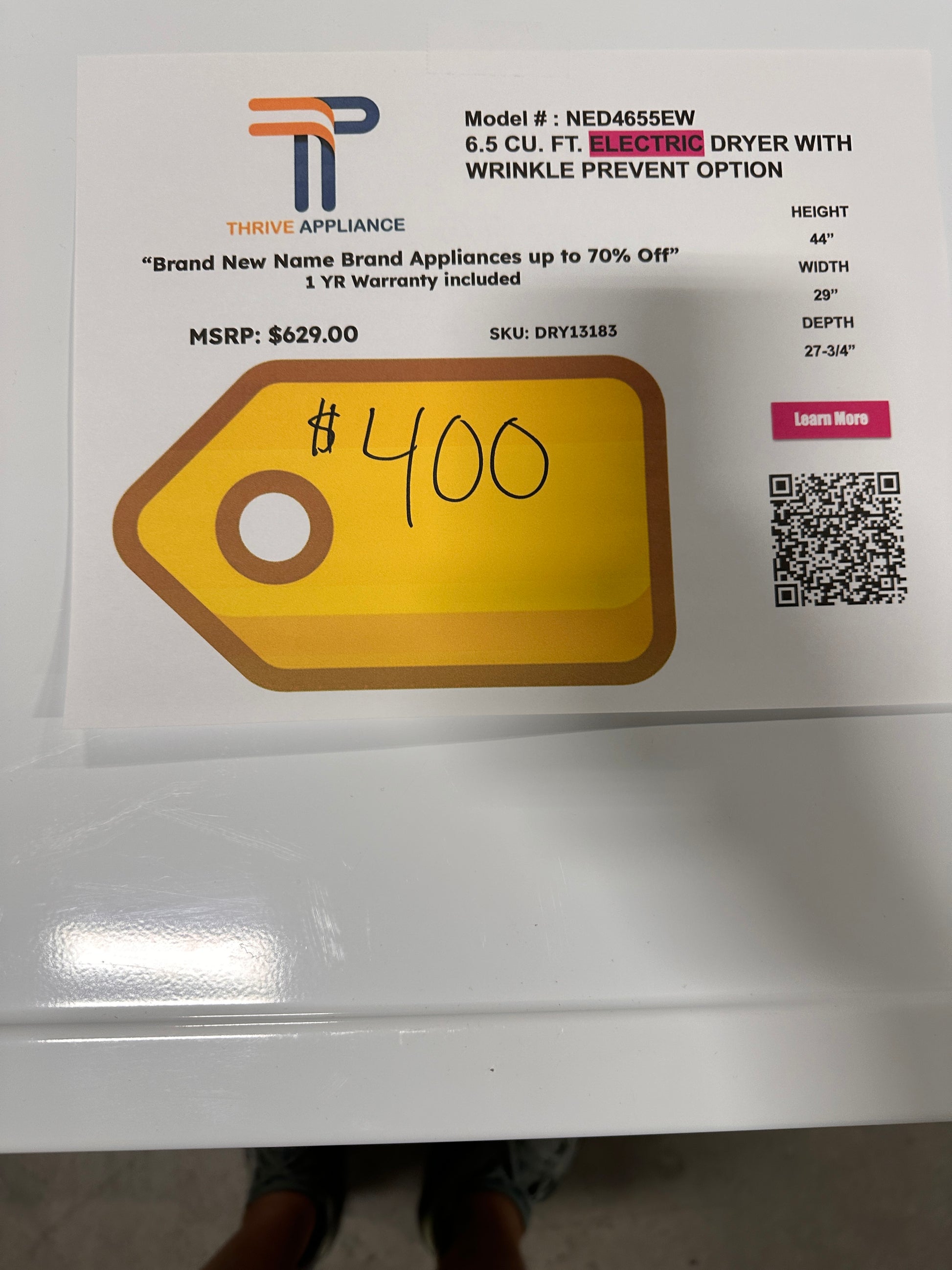 NEW! Amana 6.5-cu ft Electric Dryer MODEL: NED4655EW DRY13183