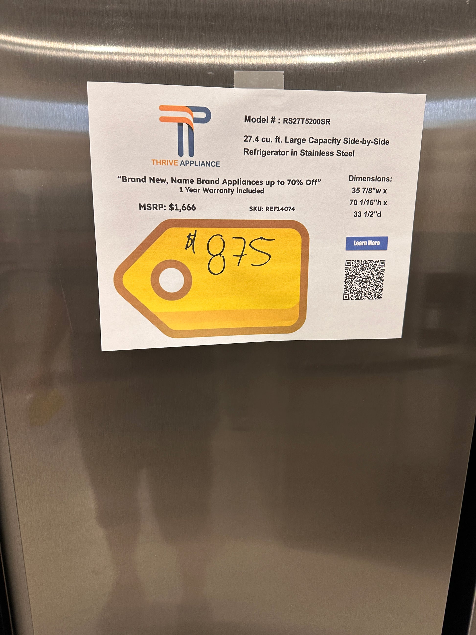 Samsung - 27.4 cu. ft. Side-by-Side Refrigerator with Large Capacity - Stainless steel MODEL: RS27T5200SR REF14074
