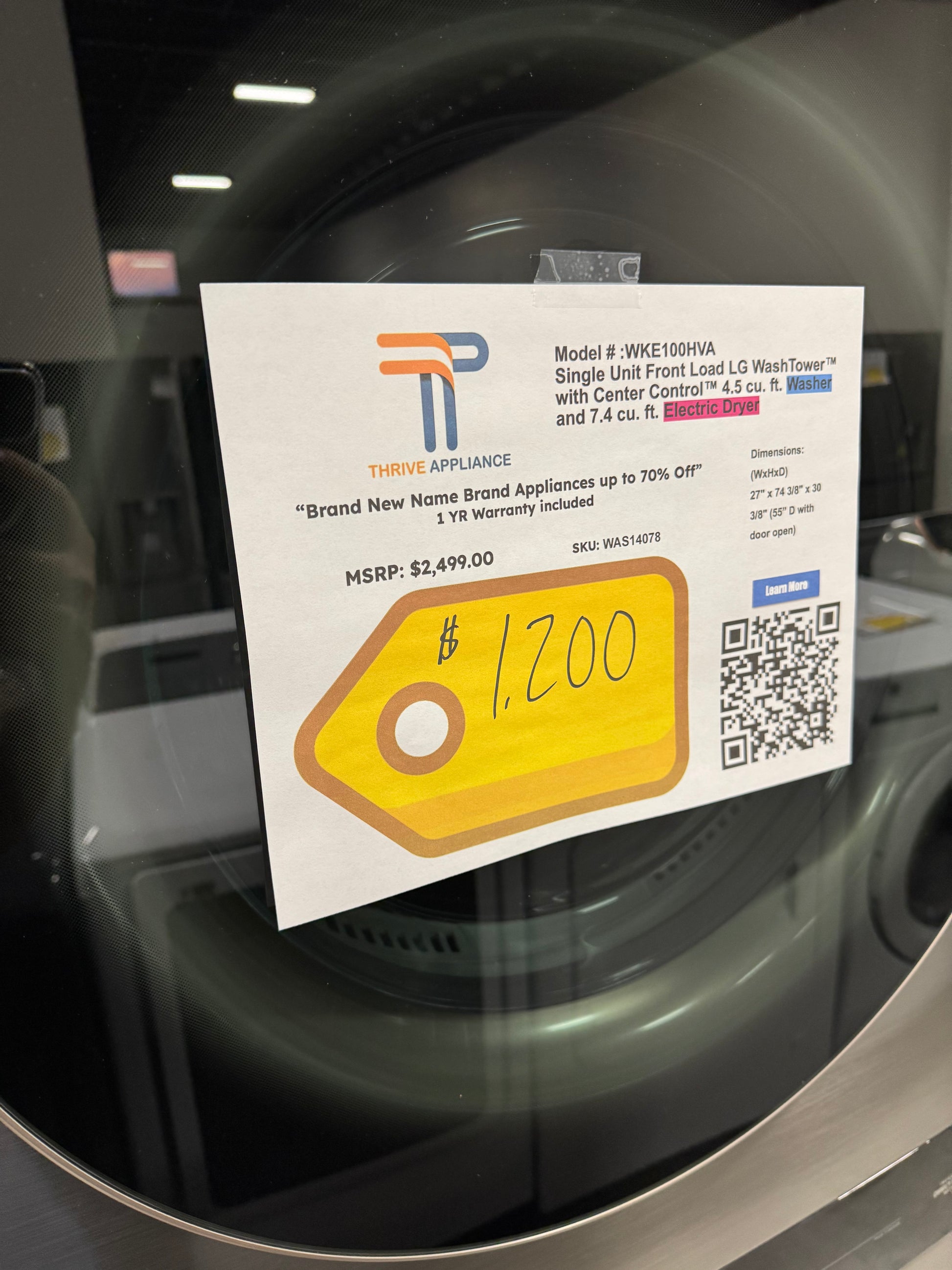 Single Unit Front Load LG WashTower™ with Center Control™ 4.5 cu. ft. Washer and 7.4 cu. ft. Electric Dryer