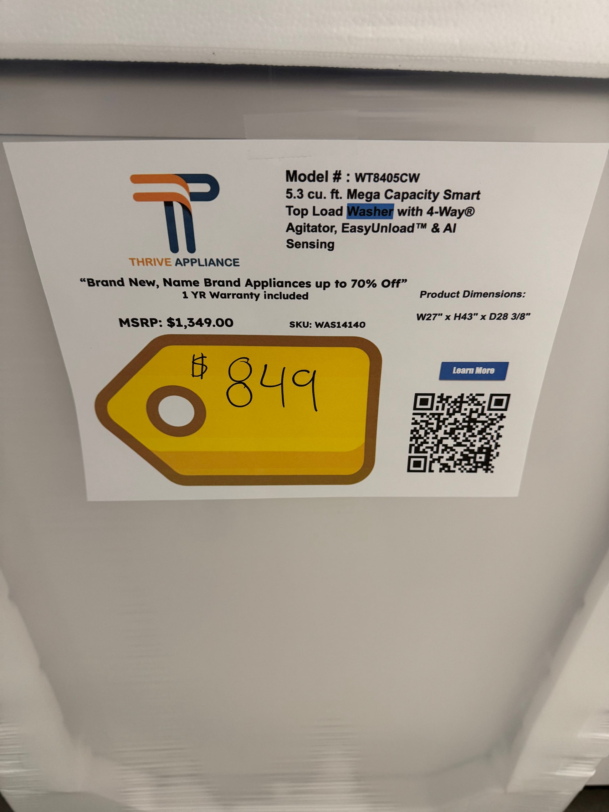 New in Box 5.3 cu. ft. Mega Capacity Smart Top Load Washer with 4-Way® Agitator, EasyUnload™ & AI Sensing