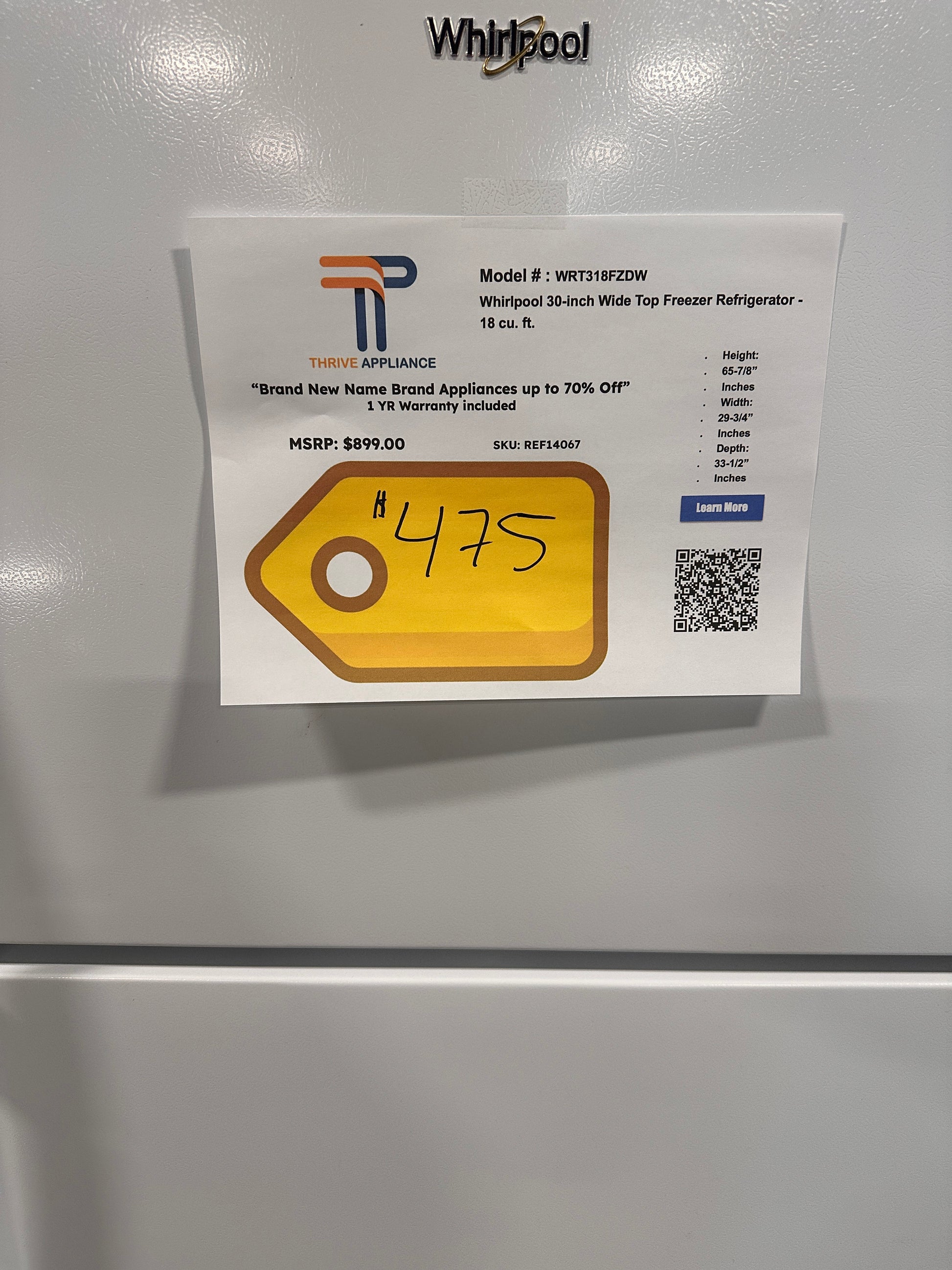 Whirlpool 30-inch Wide Top Freezer Refrigerator MODEL: WRT318FZDW REF14067