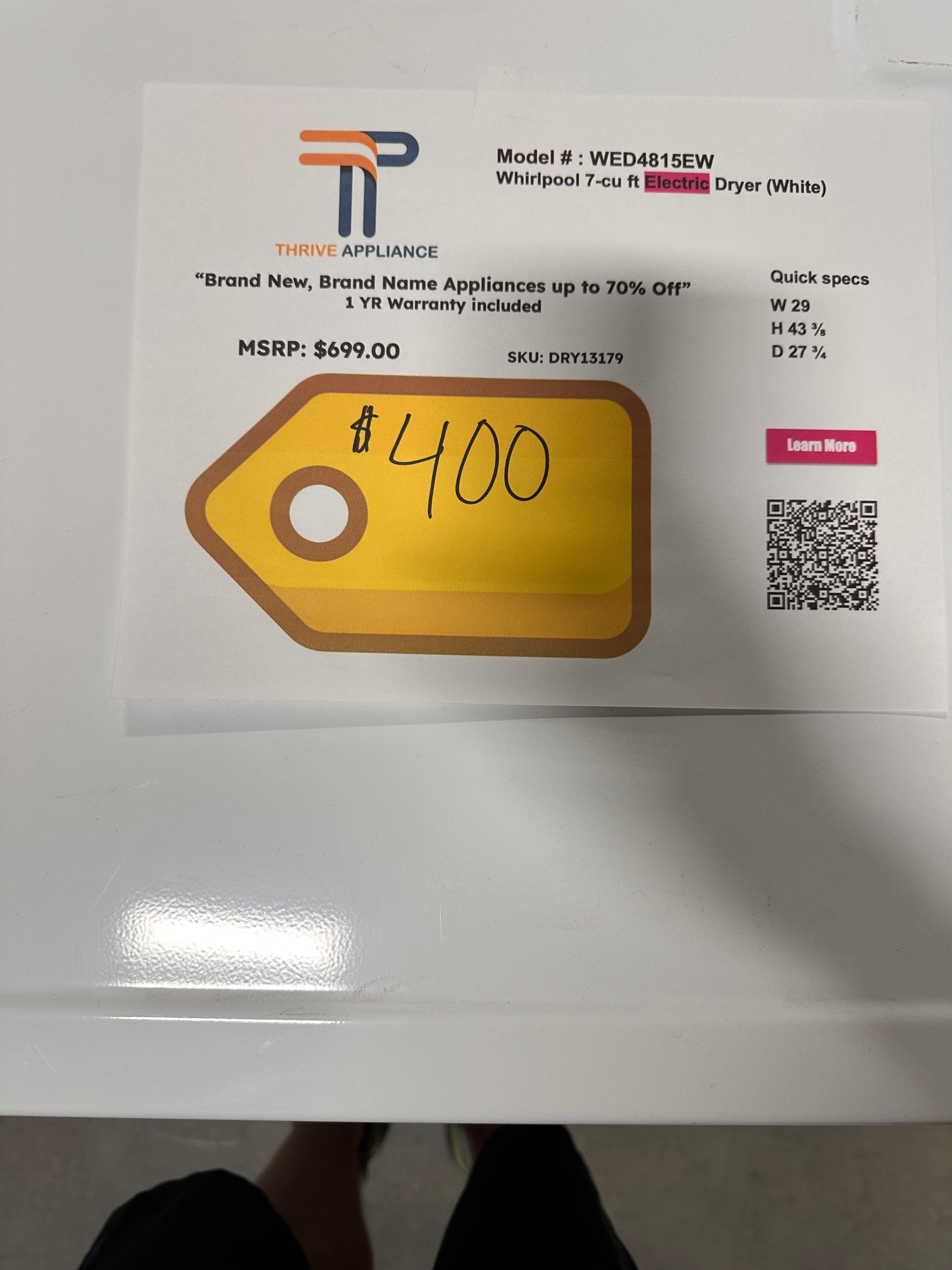 Whirlpool - 7.0 Cu. Ft. 14-Cycle Electric Dryer - White MODEL: WED4815EW DRY13179