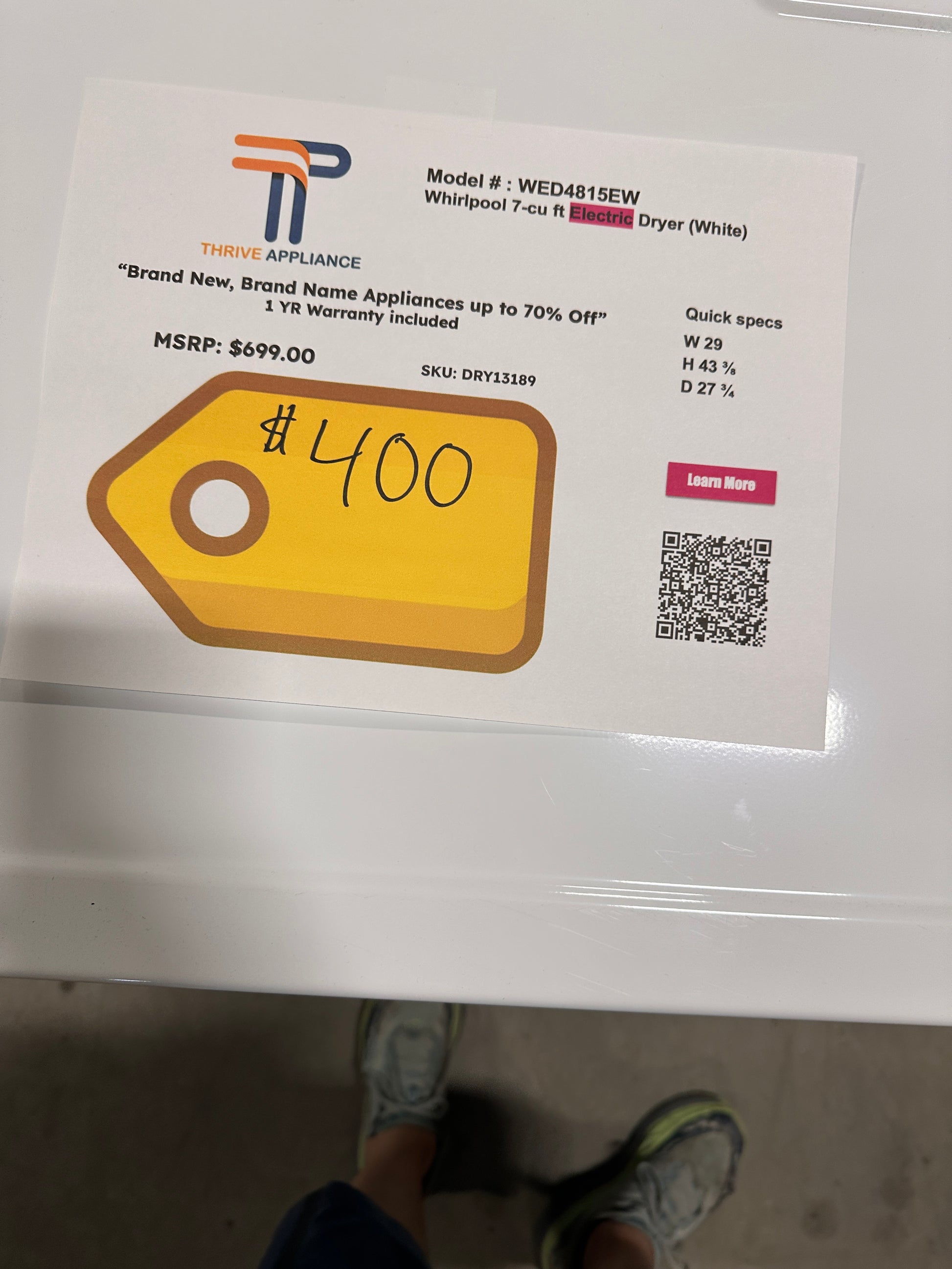 Whirlpool - 7.0 Cu. Ft. 14-Cycle Electric Dryer - White MODEL: WED4815EW DRY13189