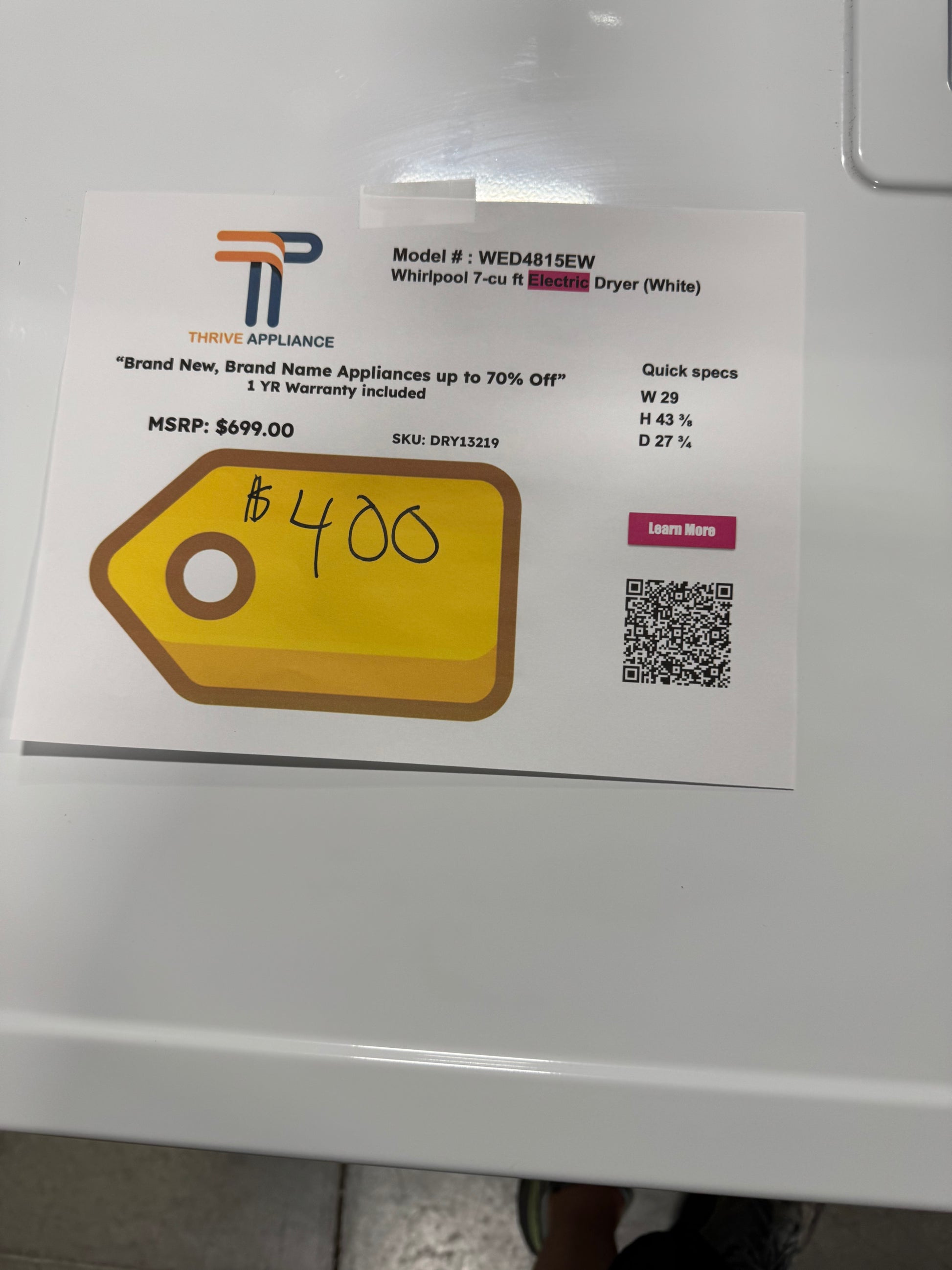 Whirlpool 7-cu ft Vented Electric Dryer ( White ) MODEL: WED4815EW SKU: DRY13219